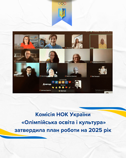 26 лютого відбулось онлайн-засідання Комісії Національного олімпійського комітету України «Олімпійська освіта і культура», яке очолила віцепрезидентка НОК України, президентка Олімпійської академії України Марія Булатова.